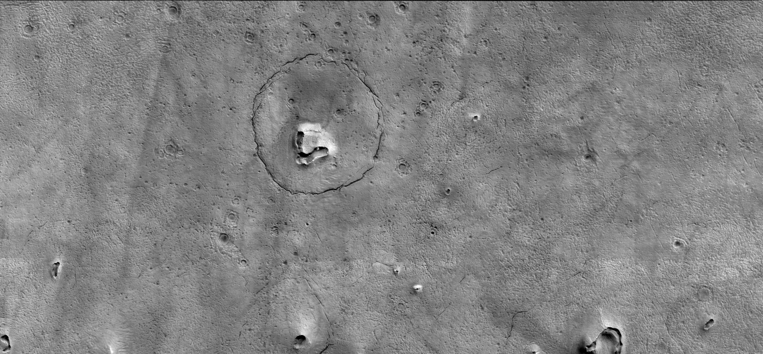 Недавно, 25 января, сотрудники Университета Аризоны опубликовали фотографию местности, которую аппарат Mars Reconnaissance Orbiter сделал еще в декабре прошлого года. После прохождения всех необходимых процедур обработки, ученые смогли увидеть необычную структуру на поверхности Марса. Как отмечают в сопроводительной заметке сами исследователи, на снимке явно можно различить голову медведя, которая «нарисована» на скалистой поверхности планеты.