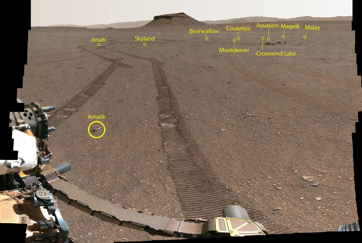 Отправляясь в свой дальнейший путь по поверхности Красной планеты, марсоход NASA Perseverance предоставил потрясающую панораму своего недавно завершенного склада образцов — важная веха для миссии и первого сбора человечеством образцов на другой планете. Панорама, составленная из 368 изображений, отправленных на Землю, охватывает результаты более месяца тщательного размещения и картирования 10 титановых трубок.