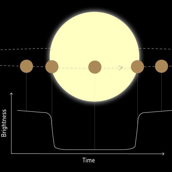 Первые обнаружения с использованием транзитной фотометрии были сделаны в 1999 году. Транзитные экзопланеты обнаруживаются, когда они проходят перед звездой-хозяином, вызывая падение света звезды, если смотреть с точки зрения наблюдателя. Транзит повторяется с временным интервалом, зависящим от времени, которое требуется экзопланете, чтобы облететь ее звезду. Например, наблюдателю нашей Солнечной системы придется подождать год, чтобы увидеть повторение прохождения Земли через Солнце.