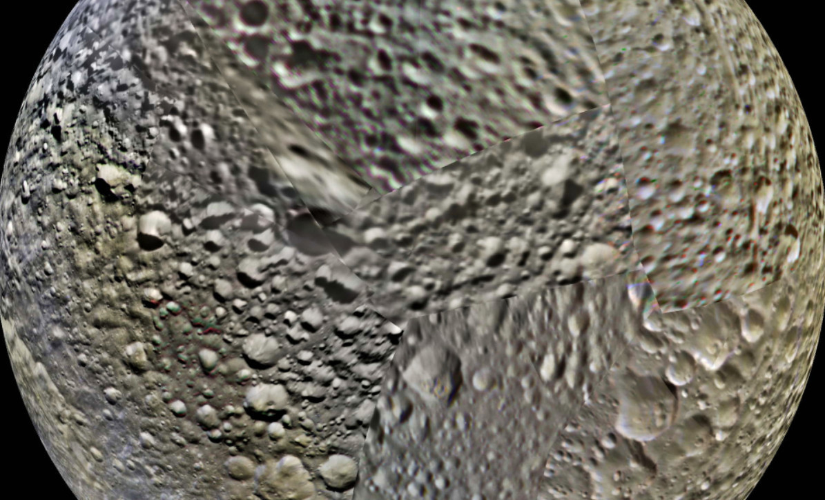 Мимас, в значительной степени представляет собой один большой снежный ком. Кажется, в нем нет ничего большего, чем водяной лед. Тем не менее, несколько необычных особенностей намекают на что-то странное на Мимасе. Луна колеблется, вращаясь вокруг Сатурна, что указывает на то, что под поверхностью происходит что-то необычное. Команда Кассини говорит, что это может быть океан. Но только может быть. Другая главная теория заключается в том, что у Мимаса есть сердцевина в форме футбольного мяча, придающая ему необычный наклон.