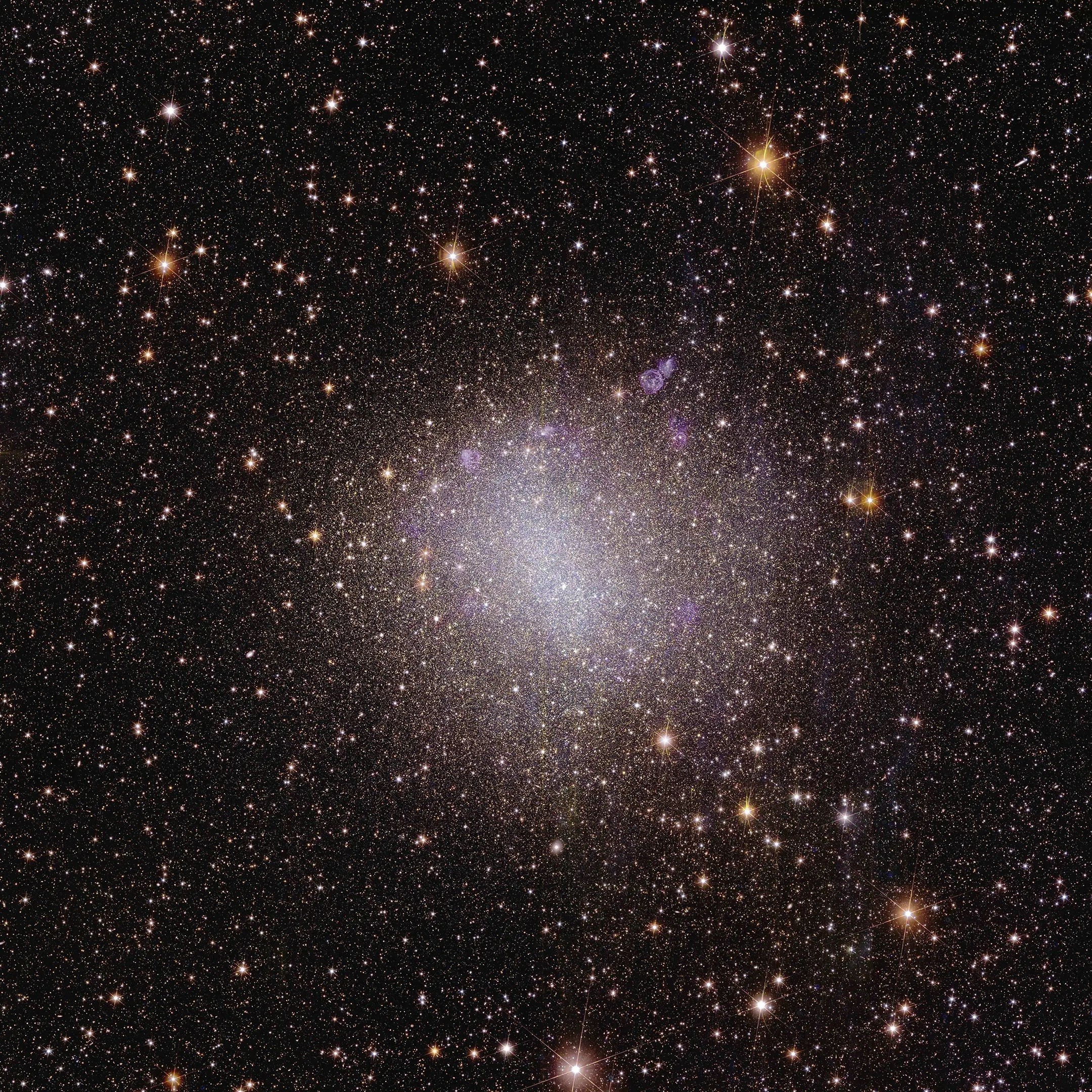 Впечатляющее изображение скопления галактик Персея демонстрирует важность темной материи. Евклид обнаружил множество слабых галактик, которые ранее были невидимыми, даже несмотря на их огромное расстояние (свету потребовалось 10 миллиардов лет, чтобы дойти до нас). Карта их распределения и формы поможет ученым лучше понять, как темная материя способствовала формированию нынешнего облика Вселенной.
