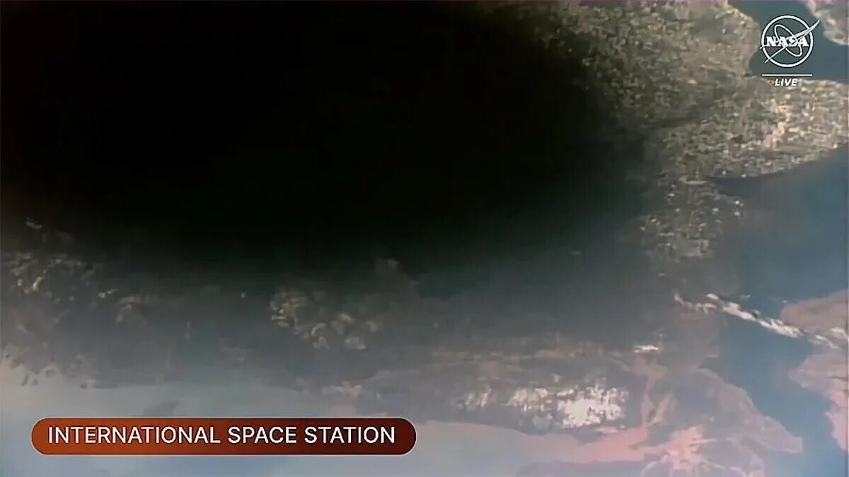 Во время солнечного затмения в понедельник члены экипажа 71-й экспедиции Международной космической станции (МКС) имели возможность наблюдать, как станция попадает в тень Луны. В этот момент они проводили свои обычные задачи, такие как перевозка грузов, обслуживание скафандров и исследования микрогравитации.