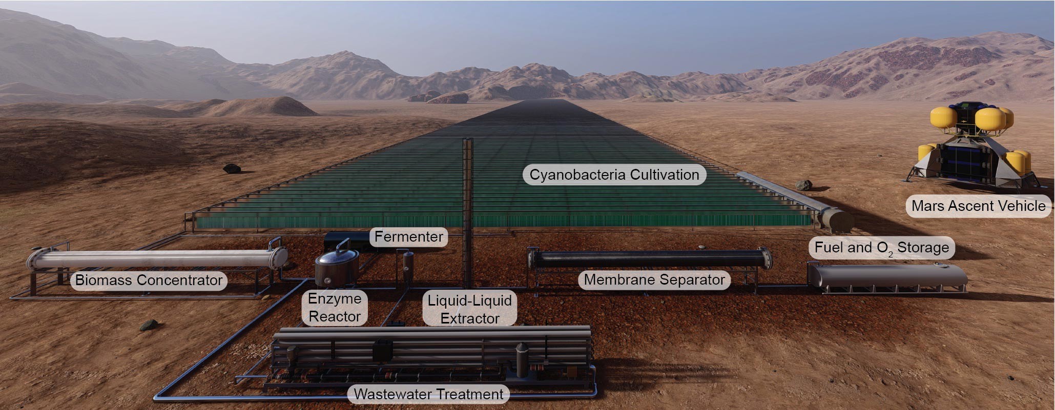 Процесс был подробно описан в статье опубликованной в журнале Nature Communications. В документе описывается процесс, который начинается с доставки на Марс пластиковых материалов, которые затем собираются в фотобиореакторы размером с четыре футбольных поля. Цианобактерии будут расти в реакторах посредством фотосинтеза (для чего требуется углекислый газ). Ферменты в отдельном реакторе расщепляют цианобактерии на сахара, которые можно подавать в кишечную палочку для производства ракетного топлива. Пропеллент будет отделен от ферментационного бульона с использованием передовых методов разделения.
