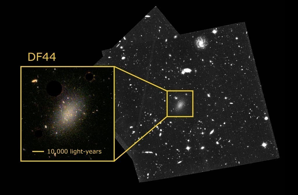 Однако вместо того, чтобы содержать около ста миллиардов звезд, как Млечный Путь, DF44 имеет только сто миллионов звезд, в тысячу раз меньше. Это означает, что количество темной материи было в десять тысяч раз больше, чем у ее звезд. Если бы это было правдой, это был бы уникальный объект с почти в 100 раз большим количеством темной материи, чем можно было бы ожидать из числа его звезд.