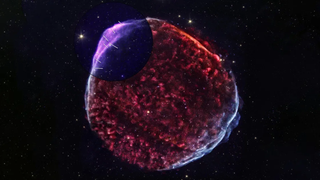 Телескоп IXPE (Imaging X-ray Polarimetry Explorer) от NASA успешно запечатлел первое поляризованное рентгеновское изображение остатка сверхновой SN 1006. Эти новые наблюдения позволяют ученым расширить свои знания о взаимосвязи между магнитными полями и потоком высокоэнергетических частиц, высвобождающихся в результате взрыва звезды.