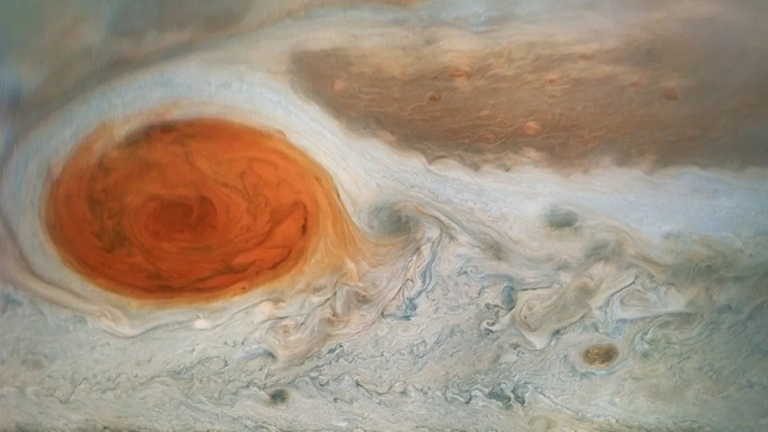 Зонд NASA Juno получил детализированные снимки, показывающие отделение различных образований от эпицентра шторма.