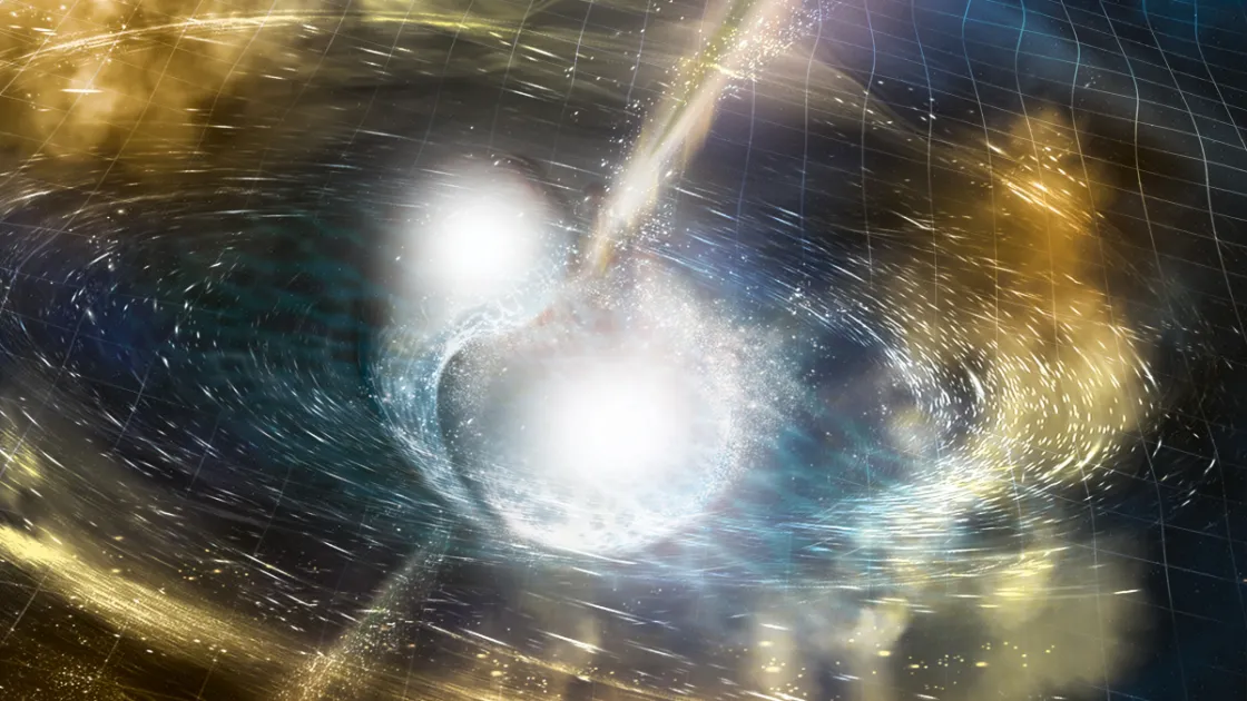 Теоретики предсказывают, что при столкновении нейтронных звезд должны излучаться гравитационные волны и гамма-лучи, а также извергаться мощные струи вещества, сопровождающиеся излучением электромагнитных волн в широком частотном диапазоне.