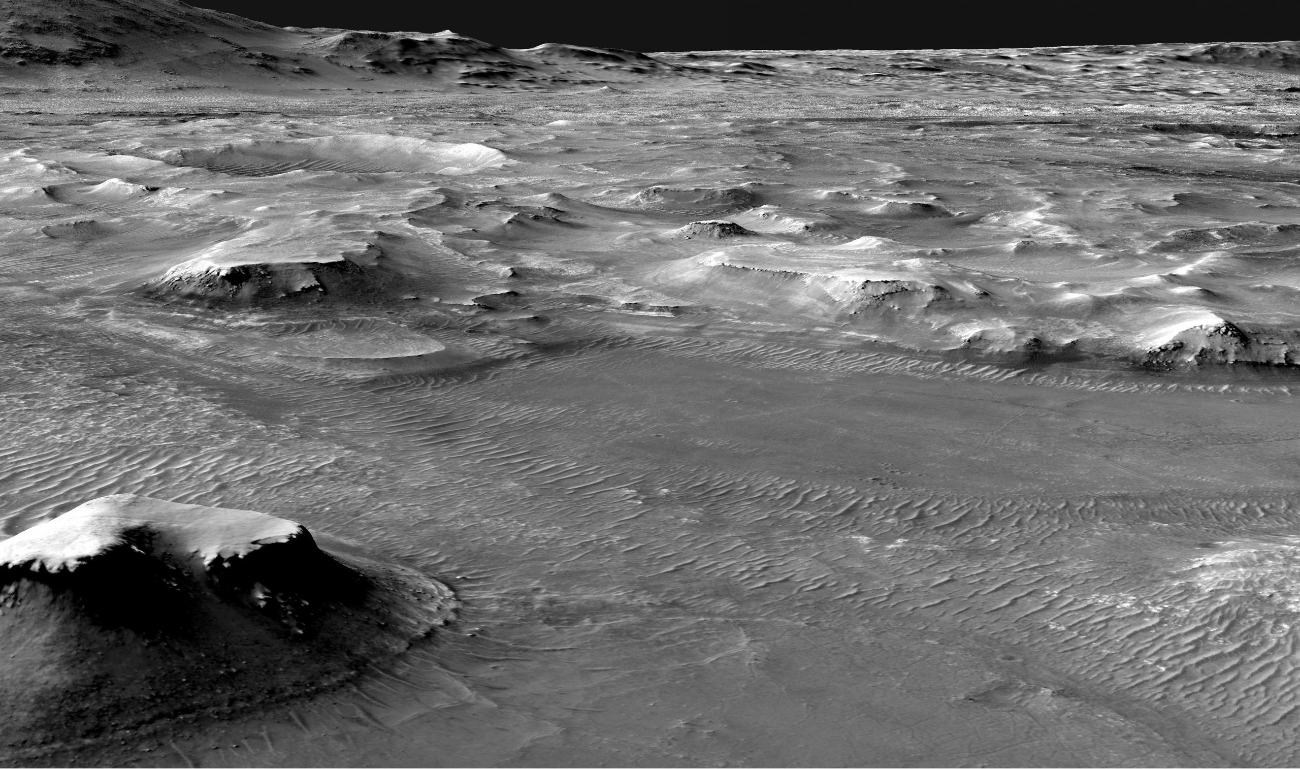Вторая — это карта с более низким разрешением (6 метров на пиксель), которая охватывает предполагаемую зону посадки и большую часть окружающей местности. Она будет использоваться на борту космического корабля совместно с более точной картой. На основе неё бортовой компьютер и будет рассчитывать траекторию снижения, и выбирать место приземления. Карты были подогнаны друг к другу с беспрецедентной точностью. Так же они были сопоставлены со всеми имеющимися глобальным картам Марса, чтобы гарантировать, точность в определении координат потенциально опасных для марсохода мест.