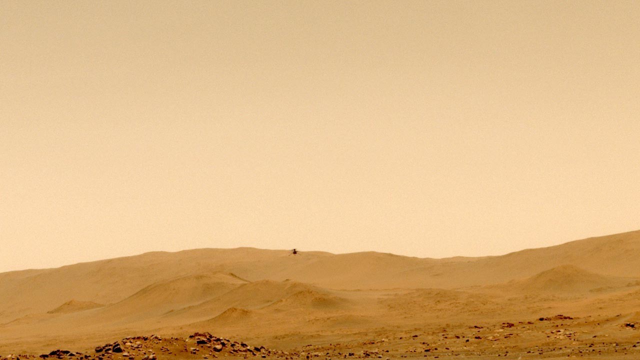 Вертолет NASA Ingenuity завершил свой пятый полет на Красной планете, совершив первое путешествие в один конец — от Плато братьев Райт до новой точки дислокации в 129 метрах к югу. После прибытия над своим новым аэродром, Ingenuity поднялся на новую рекордную высоту 10 метров и сделал цветные фотографии высокого разрешения своего нового дома.