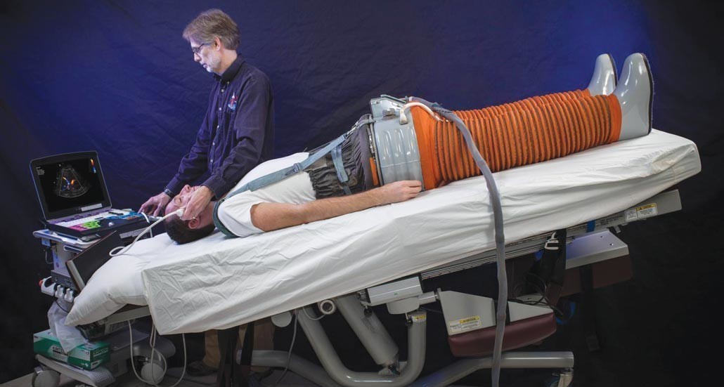 Наземные врачи борются с дисбалансом давления с помощью камер с отрицательным давлением в нижней части тела (LBNP), которые направляют жидкость тела к ногам. Космонавты привязывали себя к подобным машинам в конце 1970-х годов, чтобы подготовиться к приземлению с высокой перегрузкой.