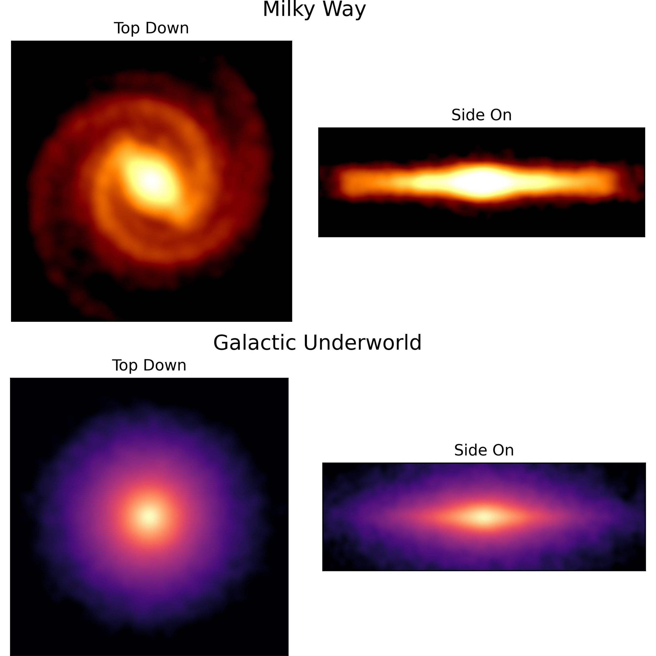 Эти компактные остатки мертвых звезд демонстрируют принципиально иное распределение и структуру по сравнению с видимой галактикой. То что иминуется авторами «Галактический подземный мир» (galactic underworld) — это пространственное распределение компактных остатков, которое было опубликовано в последнем выпуске «Ежемесячных уведомлений Королевского астрономического общества». Это космическое кладюище состоит, в основном, из черных дыр и нейтронных звезд.