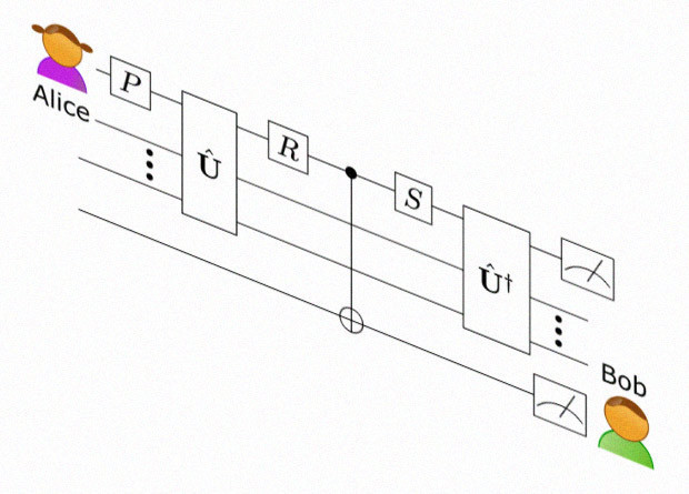 Неосторожным путешественником во времени стал Боб — он вмешивается в процесс между шифрованием и расшифровкой, измерив состояние одного кубита, нарушив запутанность между ним и остальной системой. Согласно теореме о сокрытии, информация исчезнуть не может — она остается зашифрованной в состоянии остальных кубитов. В итоге, несмотря на то что Отправитель не знал об изменениях, произошедших в системе, а потому продолжал процесс расшифровки в нормальном режиме, оказалось, что Алиса все еще может с помощью квантовой томографии восстановить информацию с кубита.