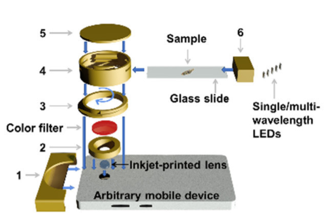 В линзе, о которой идет речь, исследователи комбинируют простое светодиодное освещение с трехмерным печатным картриджем, в котором крепится обычное стекло. Светодиод и картридж прикрепляются к смартфону.