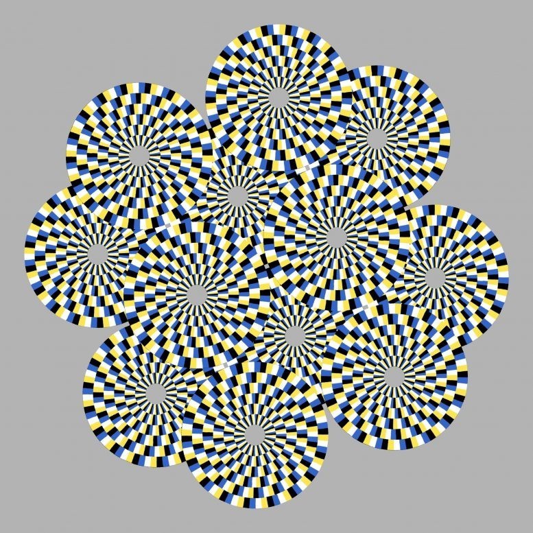 Маленький мозг мух позволяет легко отслеживать активность нейронов их зрительной системы. В ходе изучения механизмов восприятия перед насекомыми расположили иллюзии подобные расположенной ниже. Затем исследователи фиксировали поведение мух, чтобы проверить, воспринимают ли насекомые движение в этой оптической иллюзии так же, как люди. Мухи инстинктивно поворачивают свое тело в сторону любого предполагаемого движения; при представлении оптической иллюзии мухи вращались в том же направлении, что и движение, которое люди воспринимают в образце.