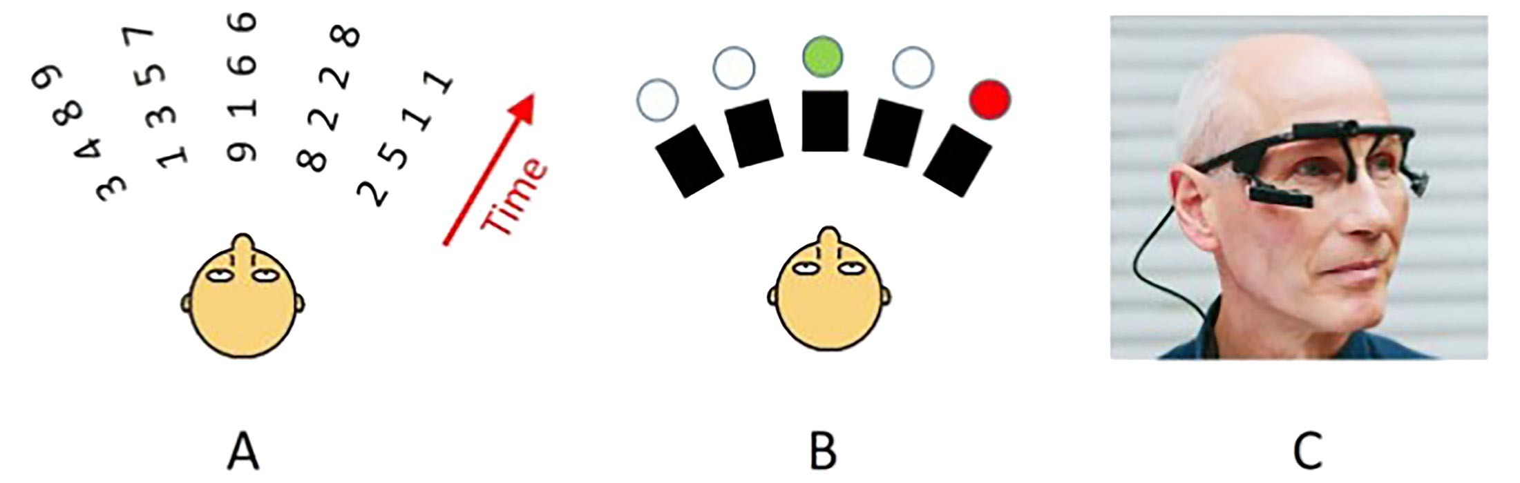 Бест и ее коллеги озвучивали участникам последовательности цифр из пяти динамиков, расположенных перед слушателем с интервалом 15 градусов, и попросили их повторить цифры, звучащие из одного целевого динамика. В некоторых случаях участников просили визуально зафиксировать целевой громкоговоритель. В других случаях участников просили визуально зафиксировать нецелевой громкоговоритель.