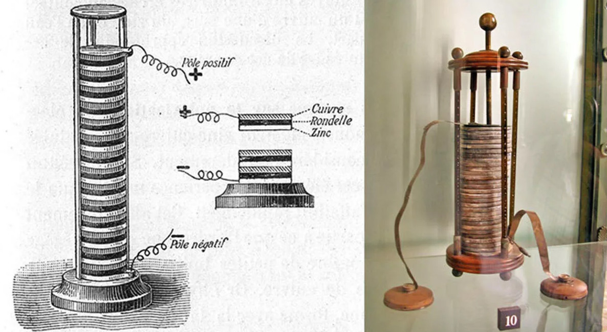 В конце 18 века в результате соперничества между итальянскими учеными Алессандро Вольта и Луиджи Гальвани были получены бесценные знания работе электричества, о том, как оно действует в человеческом теле, и, что особенно важно, о том, как его можно хранить, а также о том, как оно может создаваться. Работая над опровержением утверждения Гальвани о том, что «животное электричество» отличается от других форм электричества, Вольта создал гальваническую батарею — башню из медных и цинковых дисков, разделенных пропитанной солевым раствором бумагой — это была первая в мире батарея.