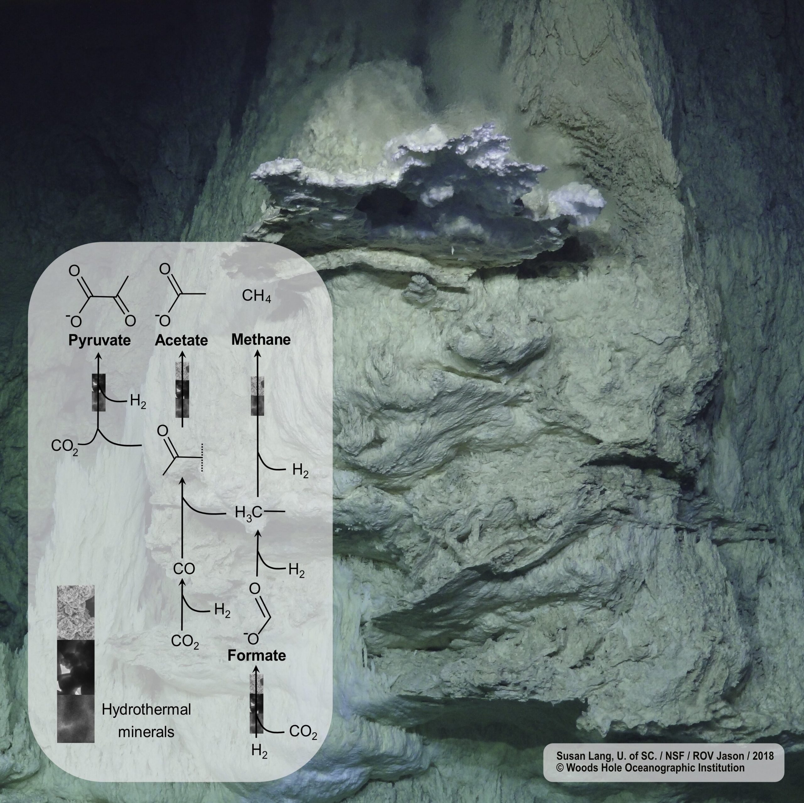 В результате экспериментов удалось выяснить, что фиксация углерода с помощью водорода может протекать в небиологической среде с образованием продуктов аналогичных пути ацетил-КоА. В присутствии таких переходных металлов, как аваруит (Ni3Fe), магнетит (Fe3O4) и грейгит (Fe3S4), которые катализируют связывание CO2 с H2 в воде, в ходе реакции, протекающей на поверхности исходных минералов, удалось получить формиат, ацетат и пируват. Все три этих продукта образуются при биологической фиксации углерода.