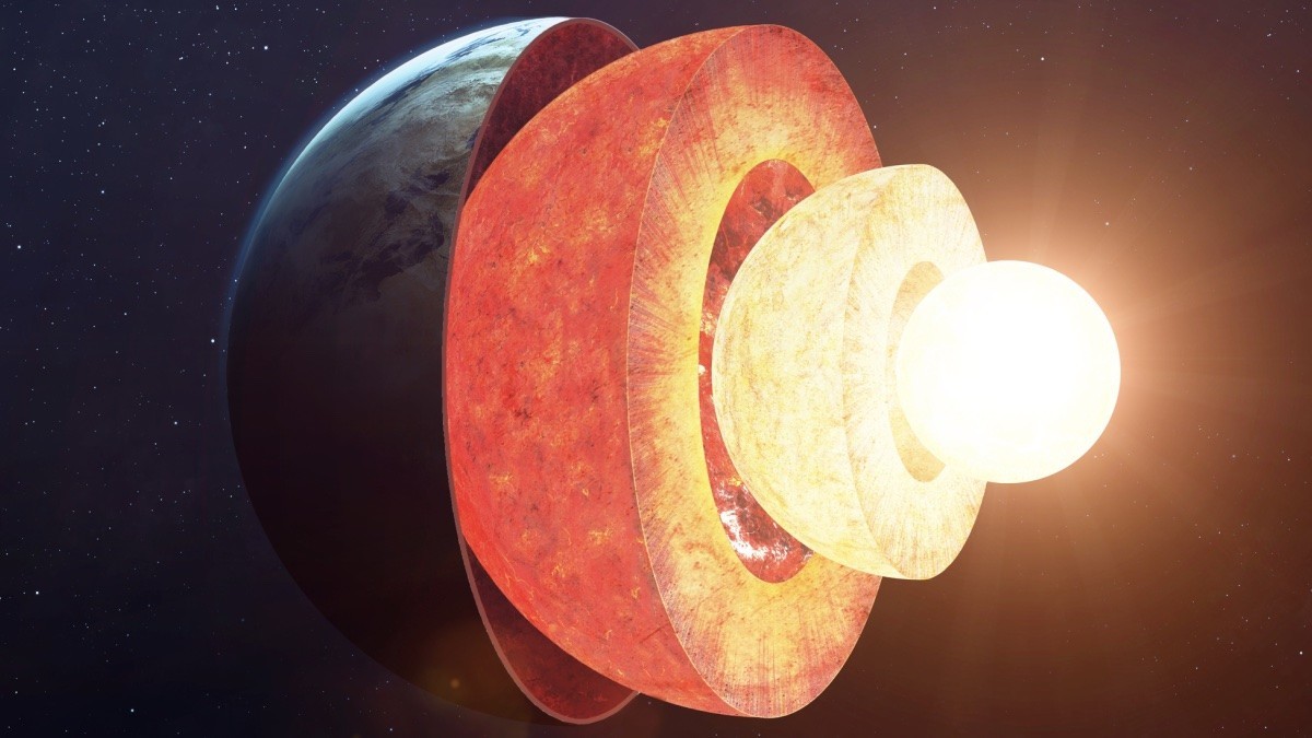 Начнем с основ. Земля внутри многослойна, как лук. Твердое железо-никелевое внутреннее ядро ​​— сегодня его радиус составляет 1200 километров — окружено жидким внешним ядром из расплавленного железа и никеля толщиной около 2400 километров. Внешнее ядро ​​окружено мантией из горячих горных пород толщиной 2900 километров и перекрывается тонкой прохладной каменистой корой на поверхности.