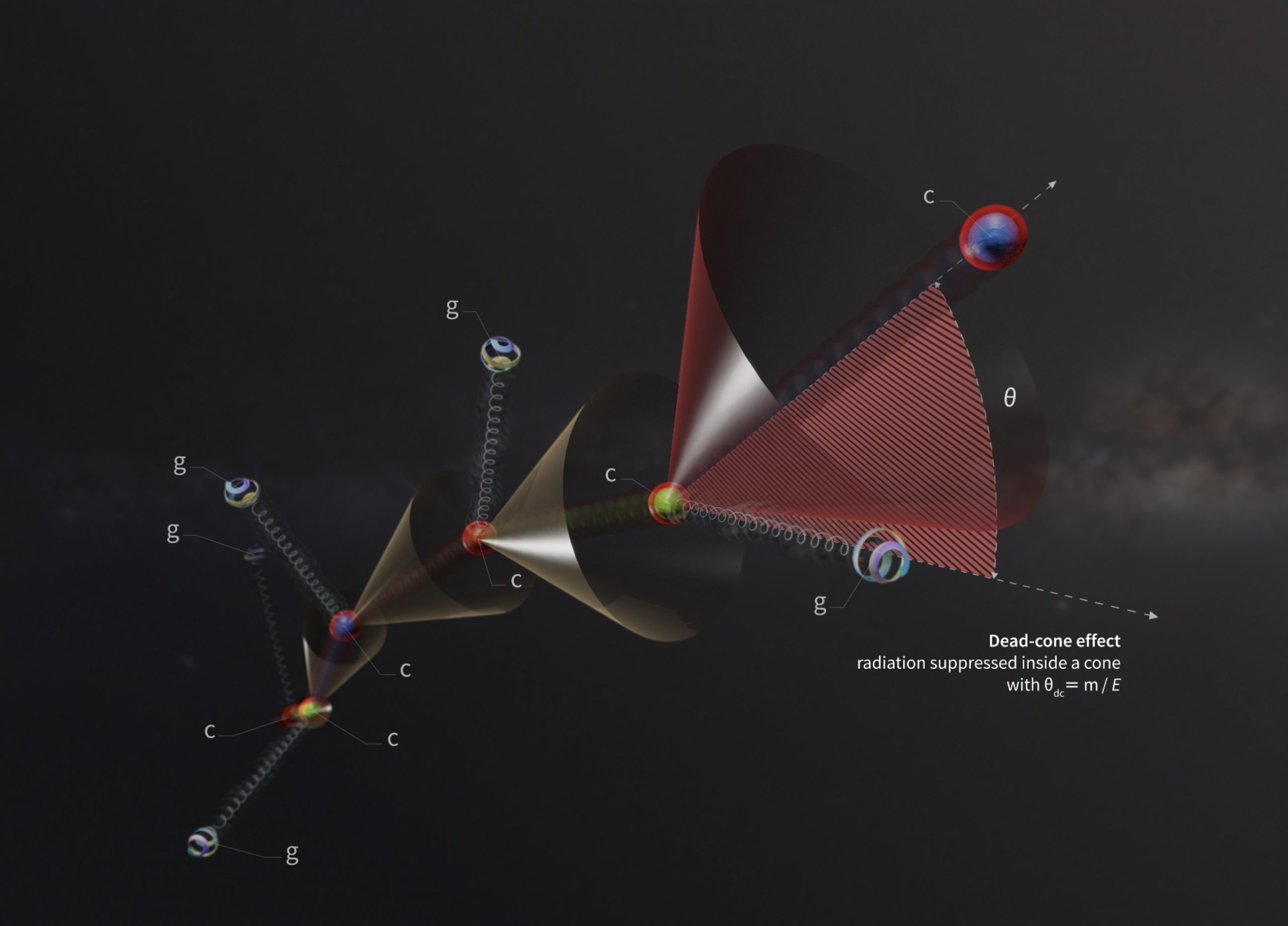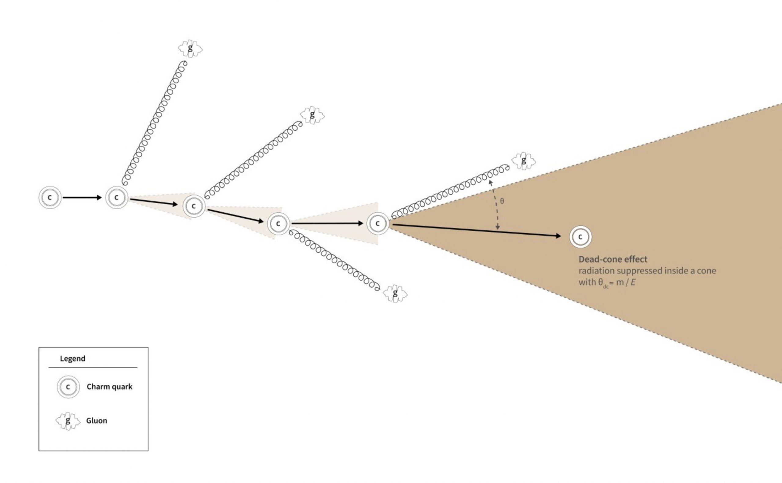 Когда эти частицы создаются в результате столкновений и движутся наружу, они начинают излучать больше кварков и глюонов. Характер этих выбросов очень важен, потому что они тесно связаны с сильным взаимодействием и помогают ученым узнать о его свойствах. Одним из способов воздействия на эти паттерны является масса излучающего кварка, в данном случае очаровательного кварка, через эффект мертвого конуса.