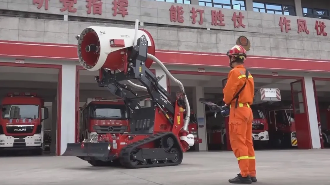 Пожарную команду китайского города Сямэнь пополнил робот на гусеничном ходу, который видит при помощи видеокамер, расчищает себе путь, выдерживает экстремально высокие температуры, отсасывает дым и выстреливает мощный поток воды на расстояние до 80 метров и на высоту до 50 метров.