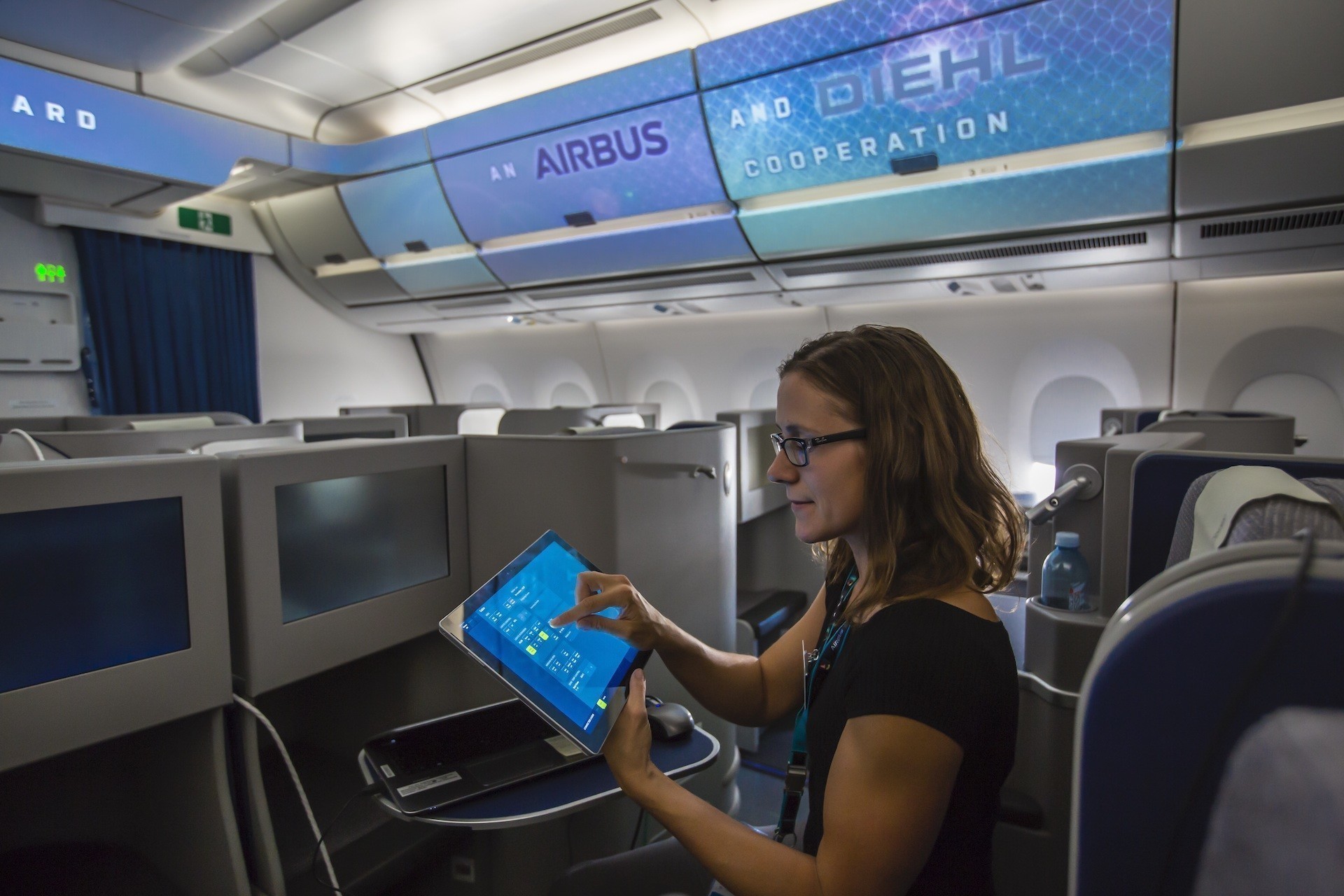 Airbus планирует добавлять новые цифровые технологии Connected Experience для их тестирования по мере готовности. В основе Connected Experience лежат технологии «интернета вещей», которые обеспечивают связь между основными элементами салона: креслами, тележками бортпитания, кухнями, багажными полками и основными системами салона (освещение, система развлечений в полете, температурный контроль).
