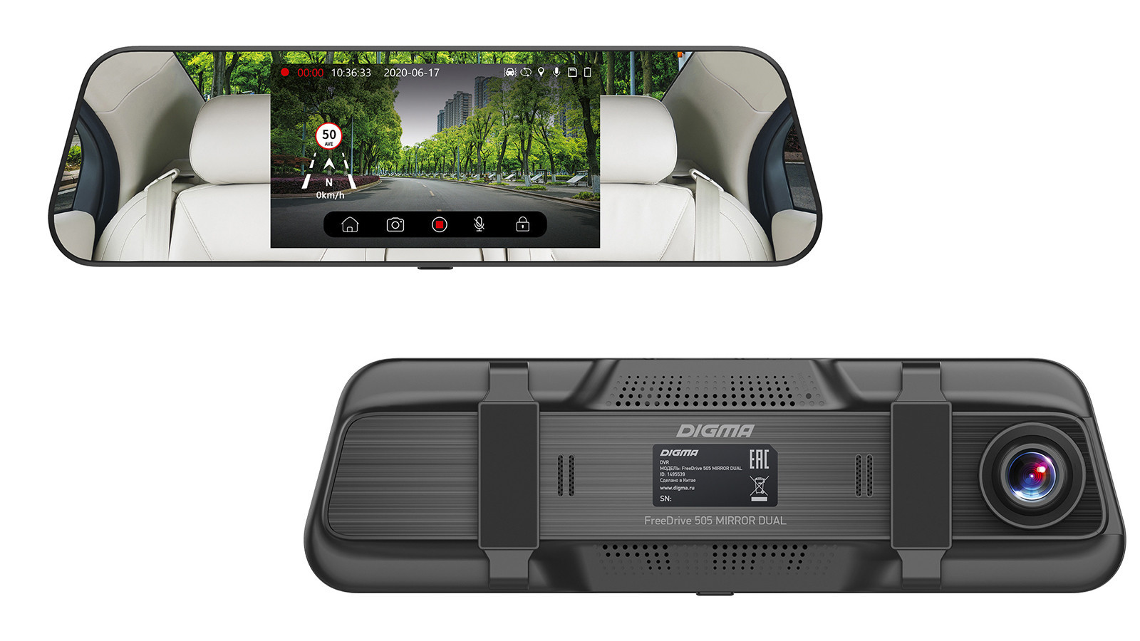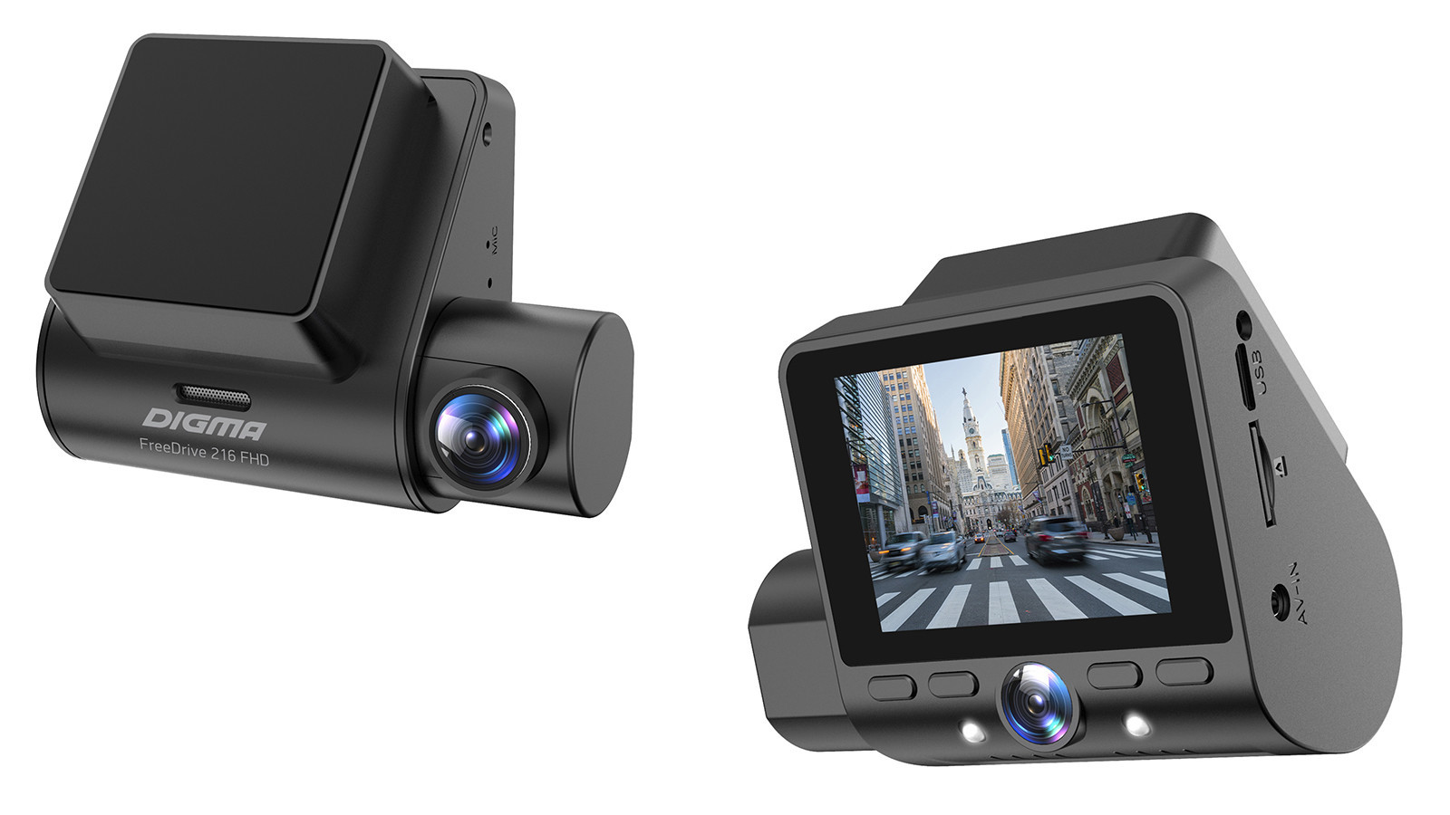 FreeDrive 505 Mirror Dual – это видеорегистратор в виде зеркала заднего вида, что существенно экономит место и освобождает пространство перед водителем, улучшая обзор. FreeDrive 216 FHD представляет собой традиционный компактный регистратор. Обе модели поставляются в черном цвете, имеют строгий стильный дизайн и небольшие габариты, что позволит им легко вписаться в интерьер салона автомобиля и не привлекать к себе лишнего внимания.