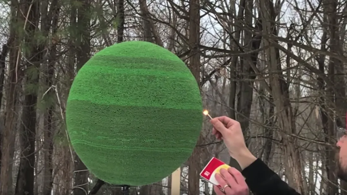 На все про все у Бена ушло несколько месяцев, в общей сложности поверхность составили 42 тысячи серных головок. После этого Эхлс поднес к шару зажженную спичку.