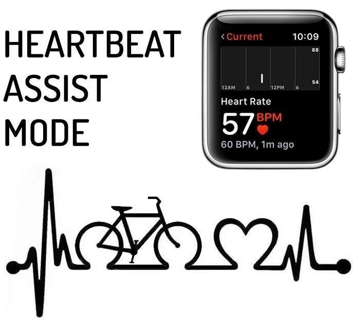 Велосипед имеет несколько режимов езды. Один из режимов — это «помощник сердца», цель которого — удерживать вас в зоне кардио, помогая нажимать педали, когда ваш пульс ускоряется.