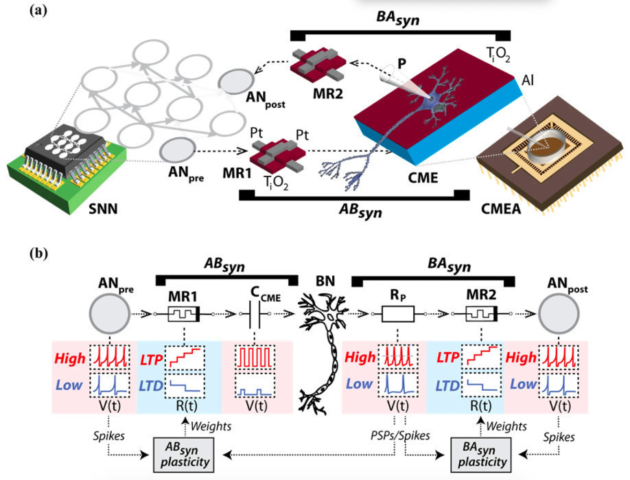 Для имитации пластичности синапсов, на мемристор подавали сигнал через два полюса. На первый поступало возбуждение от искусственного нейрона, а на второй возвращался ответ от биологического нейрона, формируя таким образом постсинаптический вход.