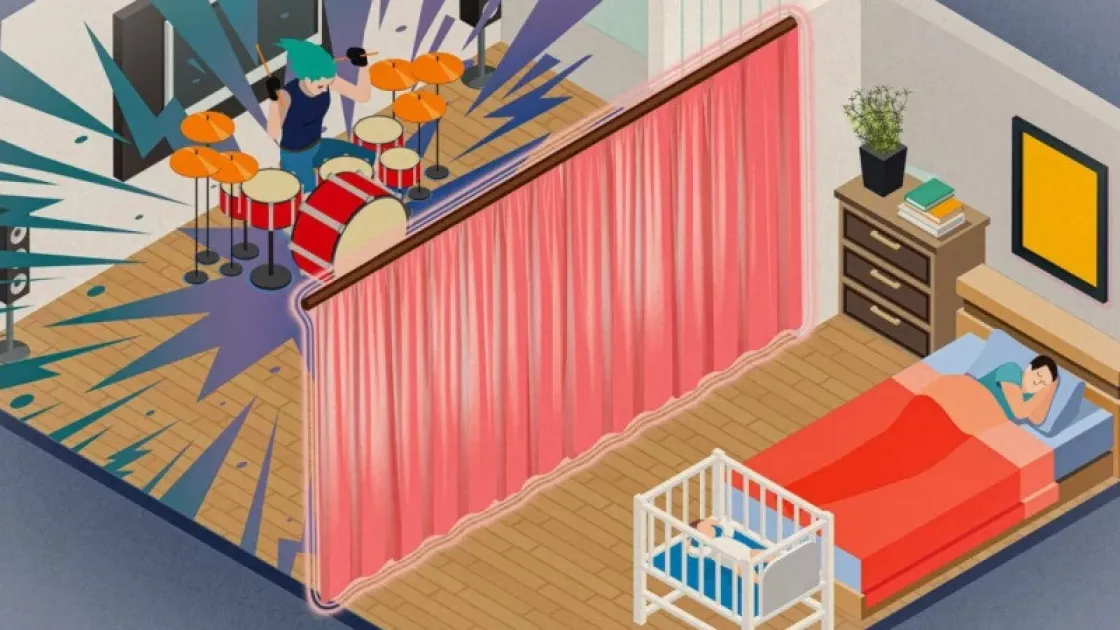 Первоначально такой подход оказался эффективным лишь в небольших помещениях. Для создания ткани, способной поглощать звук в масштабе полноценной комнаты, исследователи использовали иной метод. Вместо создания колебаний при прохождении тока по волокнам они сделали так, чтобы ткань оставалась полностью неподвижной под воздействием напряжения. Это превращает ткань в своего рода звуковой барьер, работающий как зеркало, отражающее звуки обратно к их источнику.