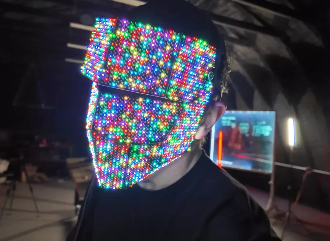 Маска собрана с нуля, и процесс её создания впечатляет своей сложностью. Ходжинс спроектировал светодиодные панели специально для этого проекта, используя около 9000 лампочек, заказанных на Alibaba. Все элементы были установлены с помощью машины Pick-and-Place, а затем аккуратно спаяны в недорогой тостерной печи.