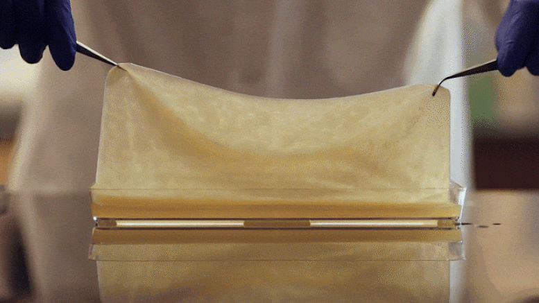 Между тем, бактерии в культуре производят большие количества прочной целлюлозы, которая служит в качестве основы. Исследователи разработали свою систему так, чтобы они могли контролировать, включены ли сами дрожжи или только производимые ими ферменты в структуру целлюлозы. Чтобы вырастить материал, требуется всего несколько дней, и если оставить его достаточно долго, он может утолщаться и занять пространство размером с ванну.