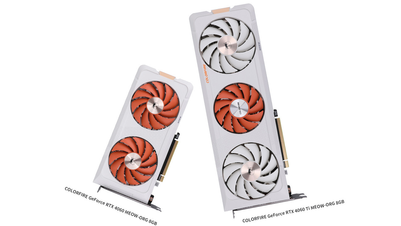 В новой линейке видеокарт COLORFIRE MEOW представлены модели GeForce RTX 4060 Ti 8 ГБ и RTX 4060 8 ГБ. RTX 4060 Ti MEOW-ORG 8 ГБ оснащена тройным вентиляторным охлаждением, тогда как RTX 4060 MEOW-ORG 8 ГБ имеет компактное двухвентиляторное охлаждение, идеальное для малогабаритных ПК.