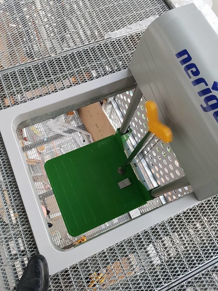 Экстренный лифт работает без электричества. Платформа начинает спускаться на нижний этаж под весом пользователя, а когда он сходит с нее, платформа автоматически возвращается в свое исходное положение на верхнем этаже.