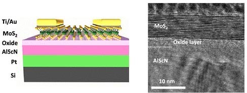 Инженеры нашли решение в многообещающем двумерном материале, известном как дисульфид молибдена или MoS2. Используя один слой MoS2 в качестве канала для устройства FE-FET на базе AlScN, команда смогла протестировать его скорость переключения и стабильность памяти.