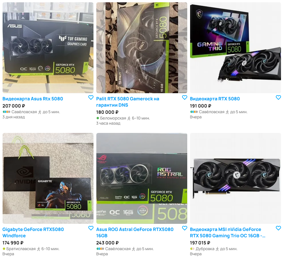 Мы решили подождать около часа после начала продаж, и обе модели всё ещё значатся как доступные. Это может означать, что у DNS запасов хватает, или же покупатели не так активно ринулись за новинкой. Вернее будет сказать, что виртуальные полки опустошили предприимчивые граждане, ведь все видеокарты мгновенно оказались на Avito.ru с наценкой от 10 до 50 тысяч.