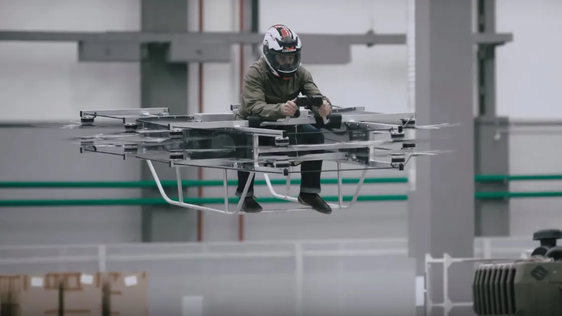 Концерн «Калашников» опубликовал видео с тестовыми полетами своего мультикоптера, берущего на борт человека. В ролике пилоты взлетают на этом аппарате, совершая облет большого зала.