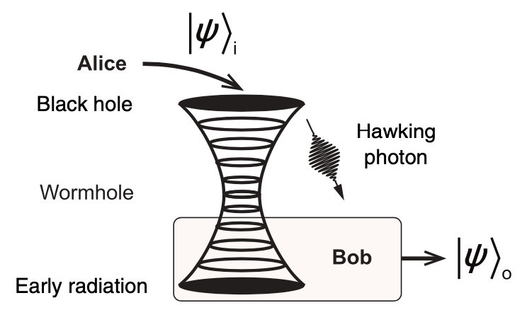 Проще всего визуализировать эксперимент — это сравнить ее с черной дырой. Это как если бы была черная дыра и зеркальная версия этой черной дыры, так что информация, проходящая с одной стороны от зеркальной черной дыры, передается на другую сторону через запутанность.