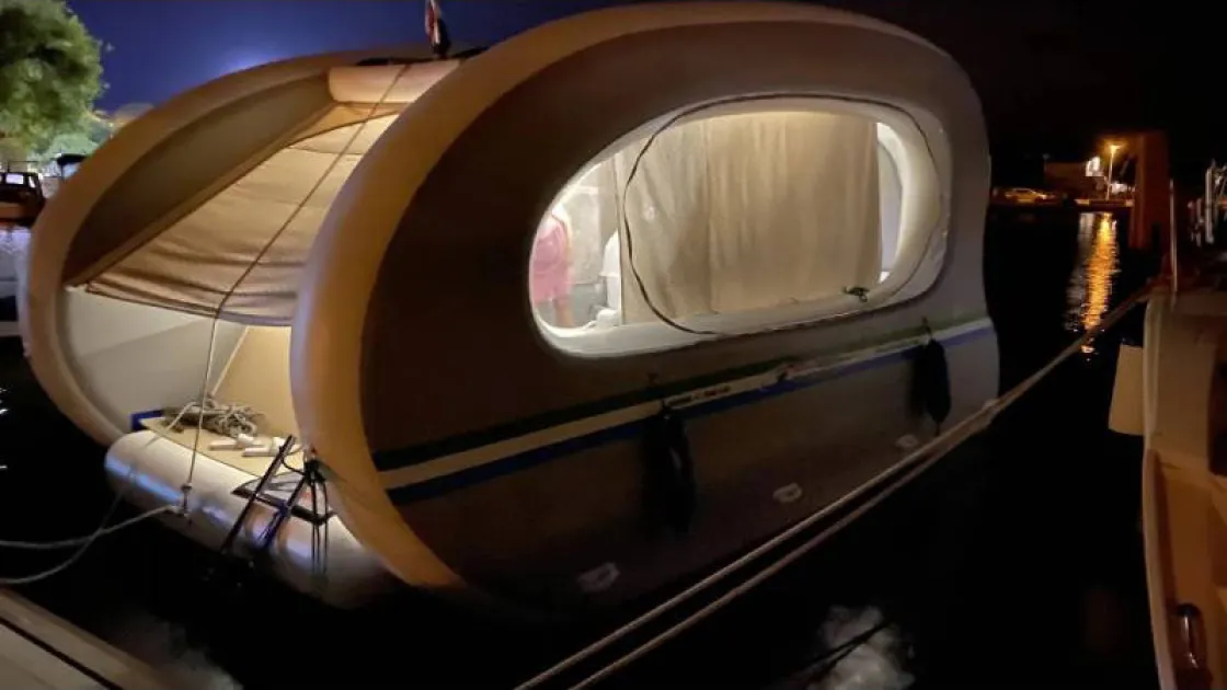 Но не спешите делать поспешных выводов! Эта надувная лодка на самом деле имеет длину 6 метров и может вместить до шести человек на борту (и, судя по фотографиям, еще троих на крыше). Навес каким-то образом достаточно жесткий, чтобы выдержать несколько человек наверху, что делает его интересной платформой для дайвинга, но явно не в открытом море. Как надувной плавучий дом может быть таким прочным — идей нет. Наверное, наноматериалы прямиком из передовых институтов, не иначе.