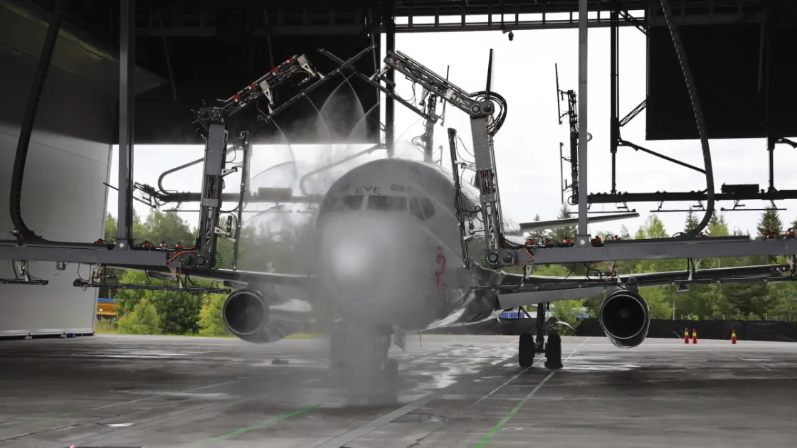 Пассажирские самолёты моют вручную. Рыночная стоимость одной мойки в разных странах колеблется от 500 до 1500 долларов за самолёт. Согласно исследованиям Boeing и Airbus, чистые авиалайнеры расходуют меньше топлива: мойка раз в две недели, к примеру, поможет сэкономить 1-2% горючего, или 70-100 тысяч евро в год. Норвежский стартап Multi Solution Gate Production, который занимается разработками в области противообледенительной техники для авиации, сконструировал первую в мире авиамойку. Она стоит более 15 миллионов евро и представляет собой специально оборудованный гейт, сквозь который самолёт протягивает электрический буксир.