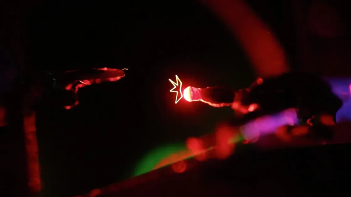 Чтобы продемонстрировать этот принцип, команда создала виртуальные фигурки из палочек, которые парят в воздухе. Они смогли продемонстрировать взаимодействие между своими виртуальными изображениями и людьми, попросив студента поместить палец в середину объемного дисплея, а затем заснять, как одна из фигур движется вдоль пальца и «прыгает» с него.
