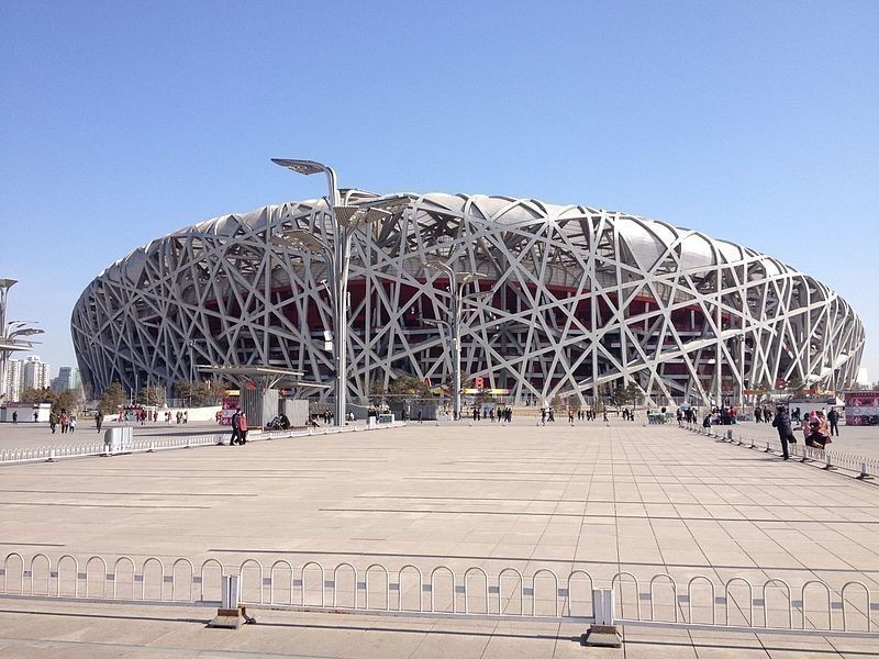 Первоначальный план по оснащению конструкции раздвижной крышей был заморожен. Стадион известен как «птичье гнездо». Уникальный дизайн достигнут с помощью изогнутых и особым образом пересекающихся стальных колонн. В 2022 году здесь планируется проведение Зимних Олимпийских игр и Паралимпиады.