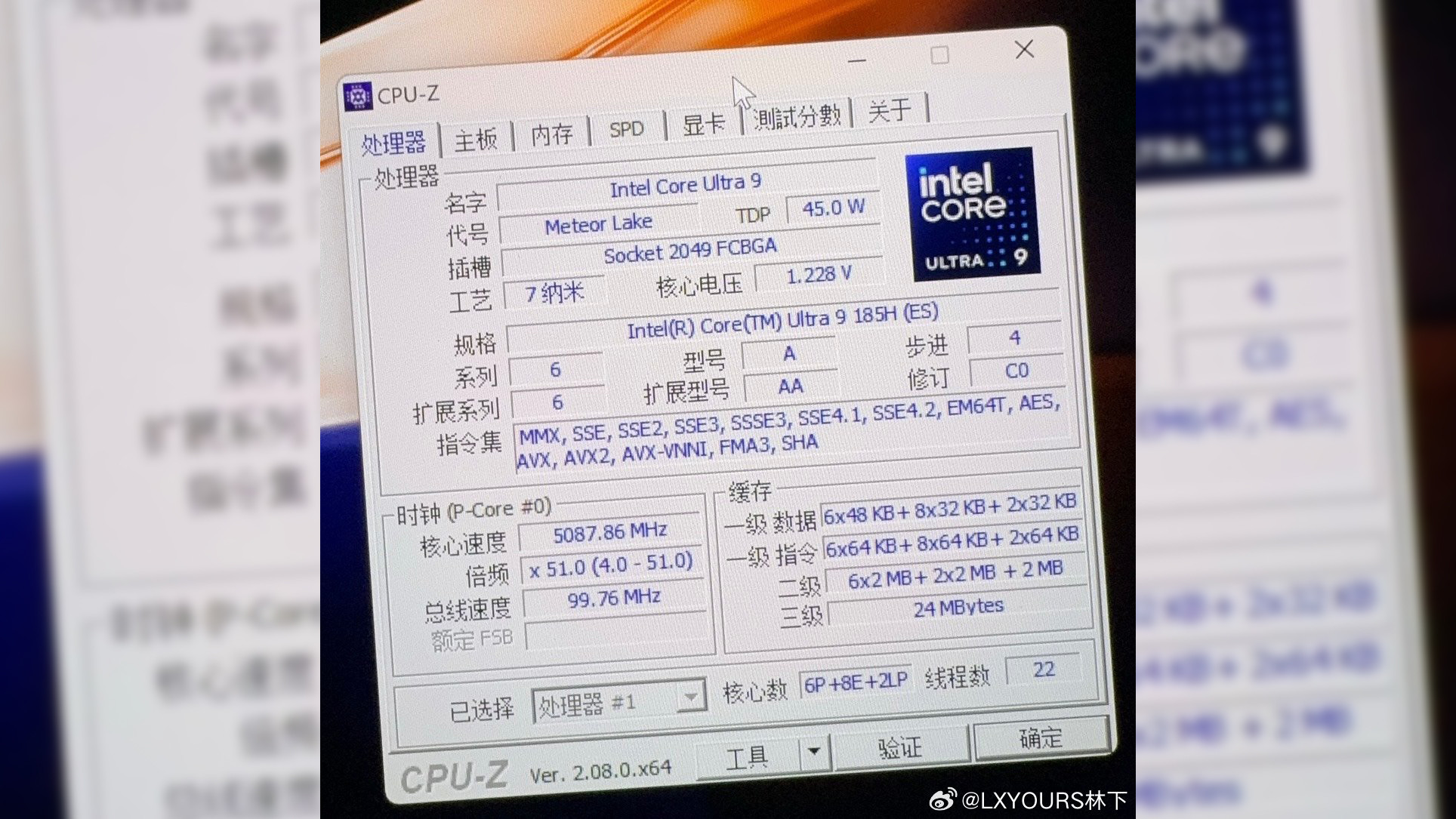 Процессор Intel Core Ultra 9 185H «Meteor Lake» в качестве образца QS, соответствующего степпингу C0, был замечен. Это приближенная к розничной модели версия, и, возможно, окончательный вариант будет еще усовершенствован. На данный момент максимальная тактовая частота процессора достигает 5,1 ГГц.