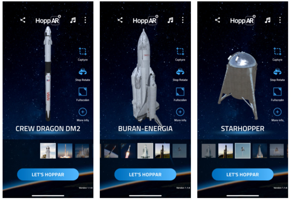 HoppAR присоединяется к ряду других приложений дополненной реальности, связанных с космосом, таких как Night Sky который помогает находить и отслеживать объекты в ночном небе. Существует также приложение Spacecraft AR , разработанное собственной Лабораторией реактивного движения НАСА. В Spacecraft AR вы можете просматривать не только ракеты, но и марсоходы, такие как Curiosity.